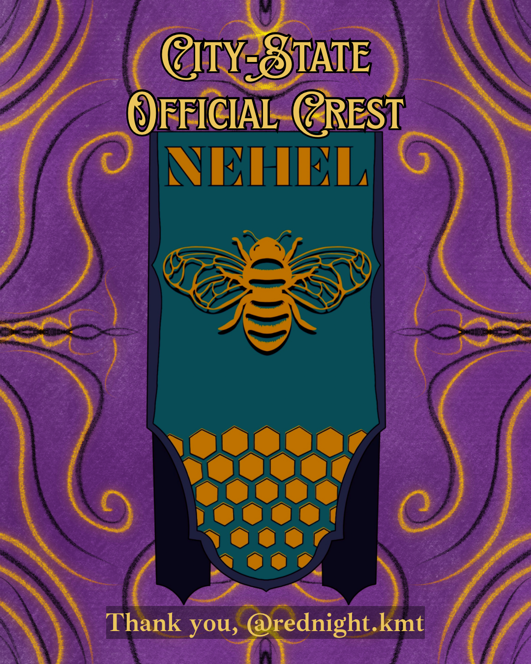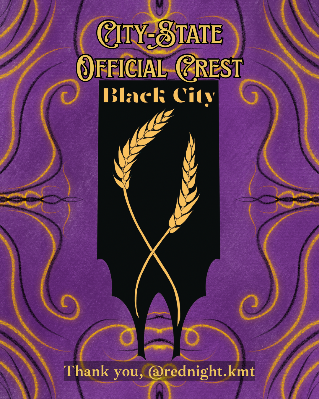 City-state crests! More artwork by my partner, @rednight.kmt depicting the official crests of Nehel, Cantana, Black City, and Aronya Dar. The hand-painted background is by @ralucamatara.designs.